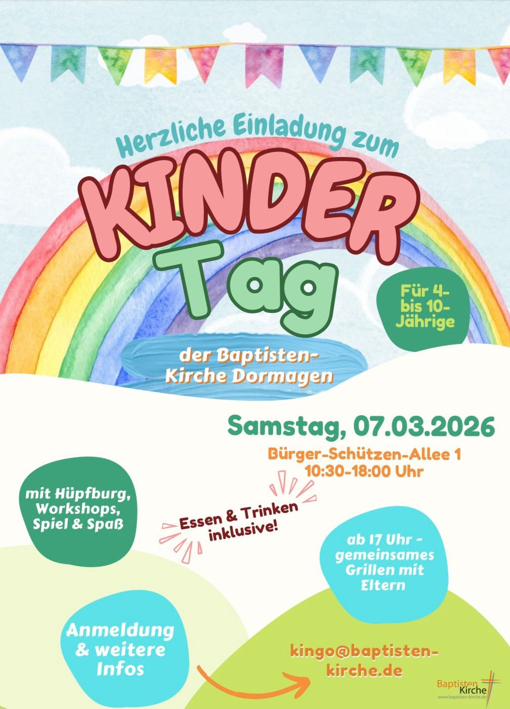 Am Samstag, 7. März 2026 findet wieder ein KINDERTAG in unserer Gemeinde statt und jedes Kind im Alter zwischen 4-12 Jahre ist herzlich eingeladen!